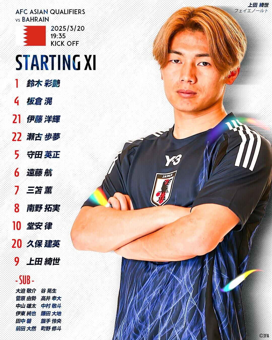 贏球即進(jìn)世界杯!日本vs巴林:日本全主力出戰(zhàn),三笘薰、久保先發(fā)