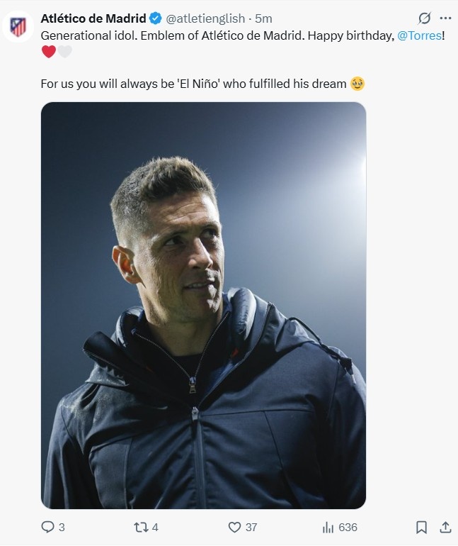 馬競(jìng)官方祝托雷斯41歲生日快樂(lè):一代偶像,你永遠(yuǎn)是我們的圣嬰