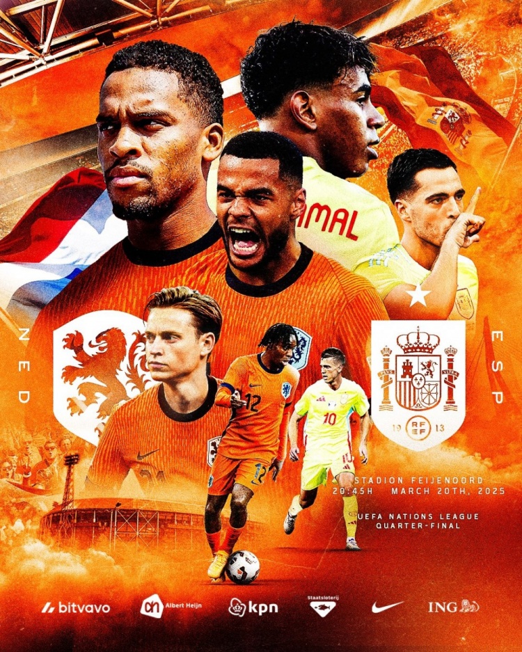 荷蘭隊發(fā)布對陣西班牙海報:加克波、德容、弗林蓬、亞馬爾出鏡