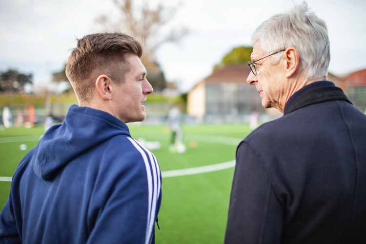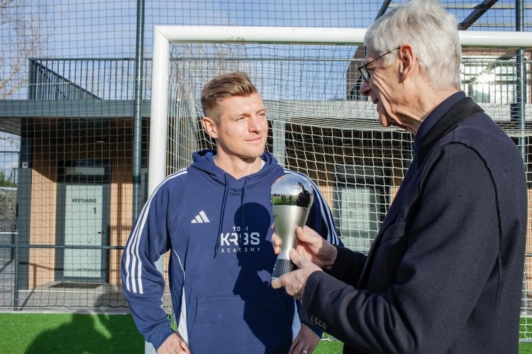 溫格造訪克羅斯青訓(xùn)營并頒發(fā)FIFA最佳陣容獎(jiǎng)杯,克羅斯發(fā)文致謝