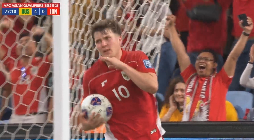 03月20日訊 世預(yù)賽亞洲區(qū)第三階段C組第7輪,澳大利亞vs印尼,比賽第78分鐘,澳大利亞后防失誤,印尼歸化前鋒羅梅尼進(jìn)球,打入印尼國(guó)家隊(duì)生涯處子球,印尼仍1-4落后,克魯伊維特場(chǎng)邊不停鼓掌。