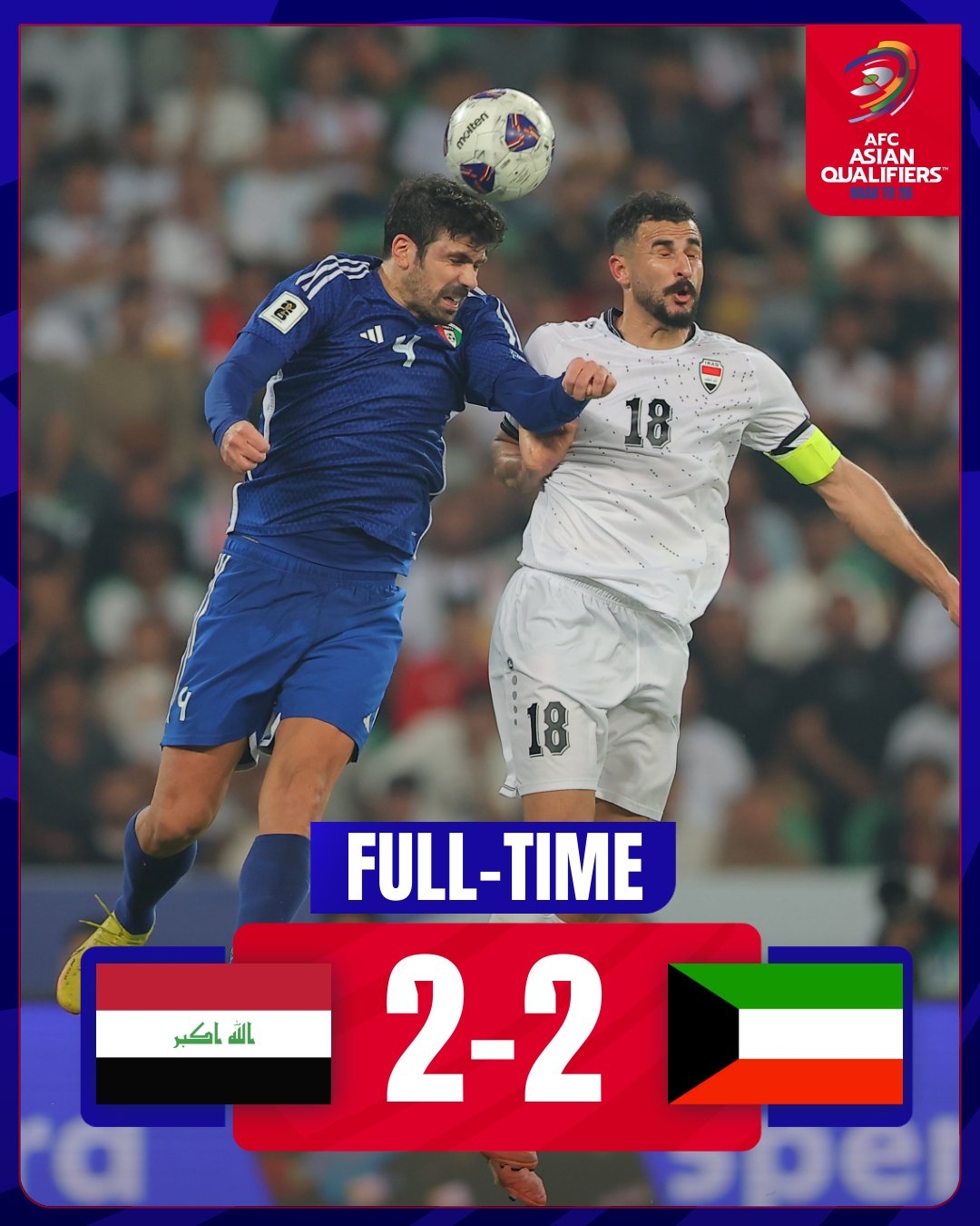 本場比賽科威特球員尤塞夫-納賽爾在第39分鐘、70分鐘梅開二度 幫助球隊取得兩球領先,而伊拉克則是在傷停補時階段連進兩球扳平比分,分別是第93分鐘阿卡姆-哈希姆破門,101分鐘拜阿什上演絕平。