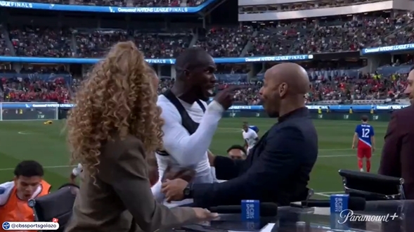 3月21日訊 今天的美洲聯(lián)半決賽,巴拿馬1-0絕殺美國,沃特曼貢獻絕殺,進球后,沃特曼跳上解說臺慶祝,對法國名宿亨利怒吼“你是我的偶像”,并在賽后將球衣送給了亨利。