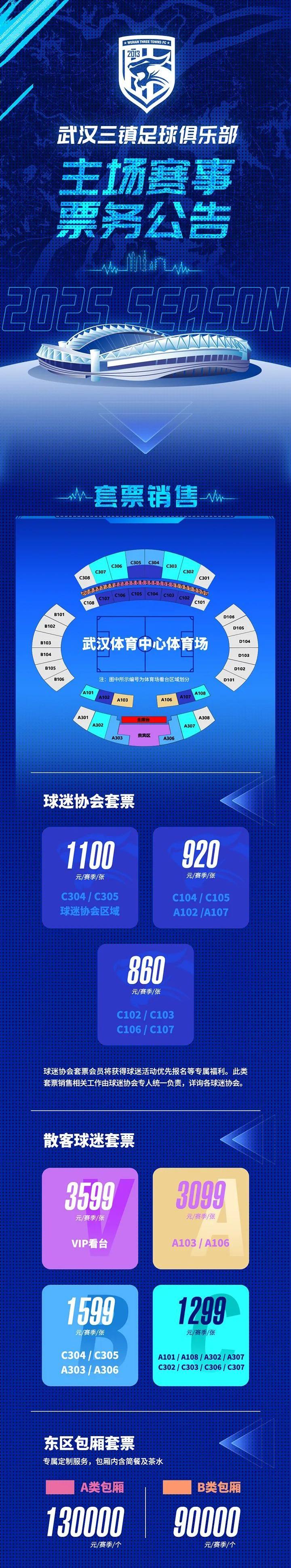 2025賽季武漢三鎮(zhèn)足球俱樂部主場票務(wù)銷售通道將于3月21日18:00正式開啟,全賽季套票即將進(jìn)行發(fā)售。多種套票類型可供選擇,滿足廣大球迷朋友的觀賽需求,歡迎大家選購。