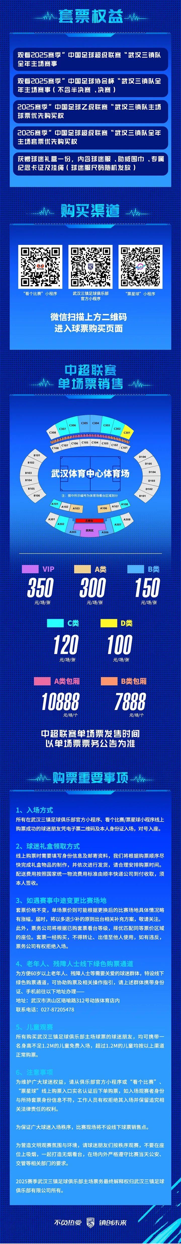 迎接主場,登上看臺(tái),我們一起為武漢、為三鎮(zhèn)而戰(zhàn)!主場票務(wù)詳情請查看下圖: