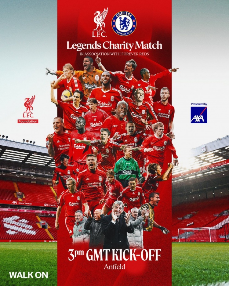 3月22日訊 利物浦傳奇隊將在安菲爾德的慈善賽中對陣切爾西傳奇隊,利物浦官方社媒曬出海報,預(yù)熱這場比賽。