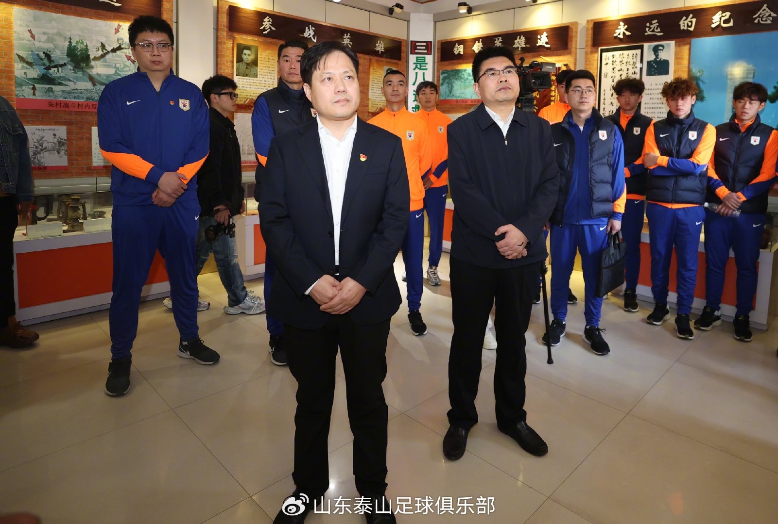 活動當(dāng)天上午,山東泰山足球俱樂部總經(jīng)理周培建、副總經(jīng)理宿茂臻、球員代表劉彬彬、吳興涵、劉世博,以及泰山B隊(duì)和魯能足校U16的球員們前往紅色朱村參觀學(xué)習(xí),接受紅色教育?,F(xiàn)場還來了許多熱情的球迷,他們與俱樂部成員一同重溫革命歷史,共同感受沂蒙精神中那種對信仰的忠誠、對責(zé)任的擔(dān)當(dāng)以及無私奉獻(xiàn)的偉大力量。球迷們的熱情參與讓此次活動更加充滿意義,也讓大家更加堅(jiān)定了傳承紅色基因、踐行社會責(zé)任的信念。
