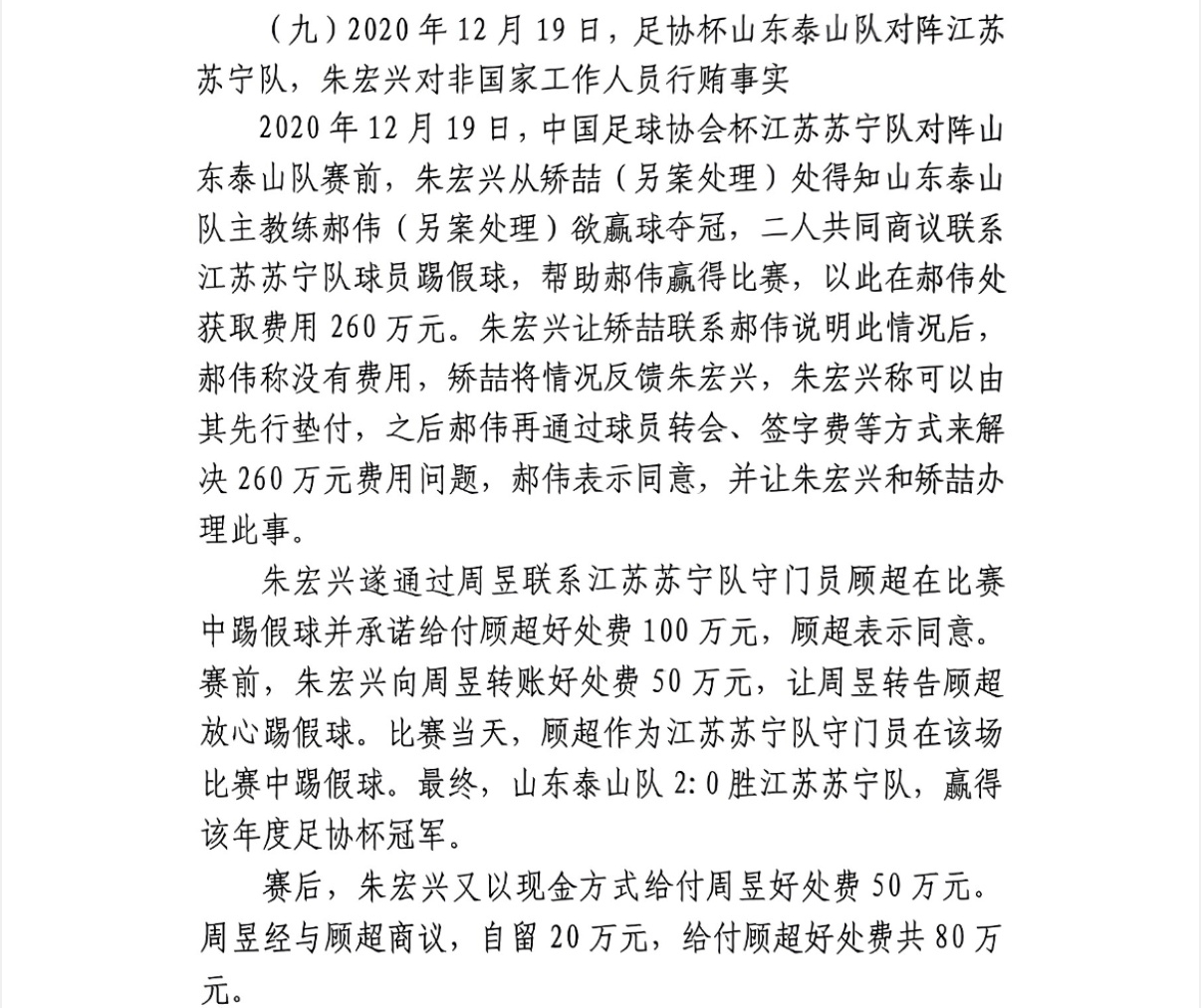 網(wǎng)傳判決書:20年足協(xié)杯決賽泰山vs江蘇存在假球,顧超收80萬(wàn)放水