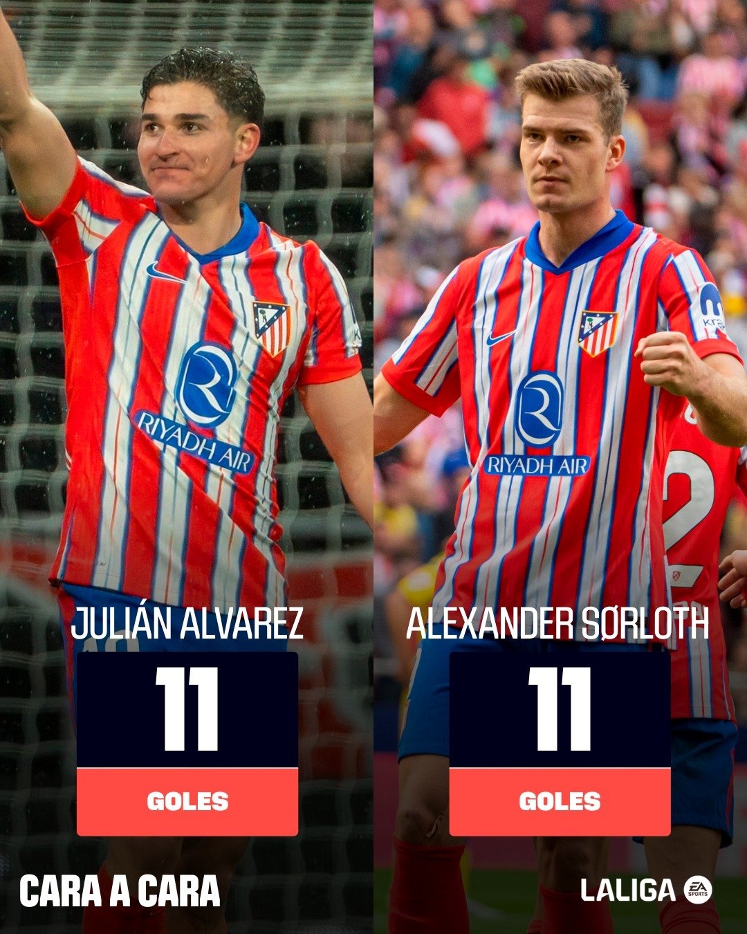 03月22日訊 西甲官方曬出了馬競兩位前鋒的數(shù)據(jù),在28輪的西甲比賽中,阿爾瓦雷斯和索爾洛特各打入了11球。