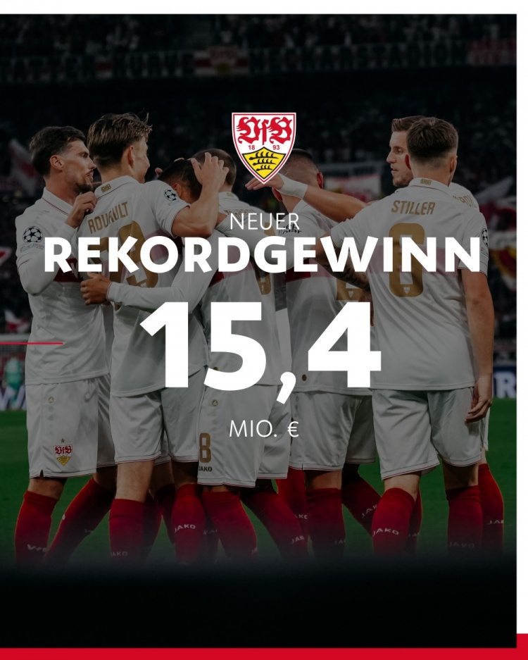 斯圖加特官推寫(xiě)道:“斯圖加特1893股份公司在2024自然年的總收入為2.998億歐元,創(chuàng)下了俱樂(lè)部的歷史新高。同樣重要的是,利潤(rùn)達(dá)到了1540萬(wàn)歐元,也創(chuàng)下了歷史新高。”