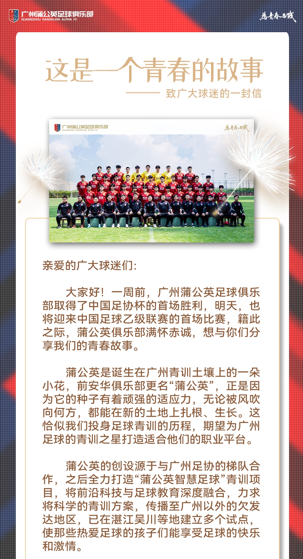03月22日訊 2025賽季中乙本周開賽,新軍廣州蒲公英在收隊比賽前發(fā)布了致廣大球迷的一封信,在信中俱樂部講述了球隊的歷史,并表達(dá)了將做好青訓(xùn)的決心和對球迷的感謝。