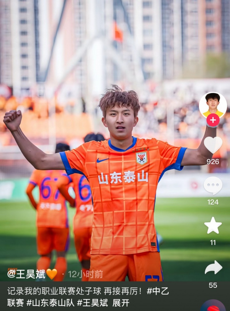 3月23日訊 泰山B隊球員王昊斌更新社媒,記錄了自己職業(yè)生涯的處子進(jìn)球。
