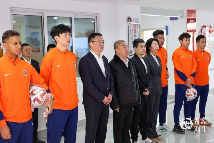 青島市民政局局長江聯(lián)軍、青島海牛足球俱樂部董事長喬偉光,總經(jīng)理張冬、副總經(jīng)理馮文靜,球員宋龍、牟鵬飛、劉軍帥、林創(chuàng)益、席爾瓦、奧古斯托參加了此次活動(dòng)。