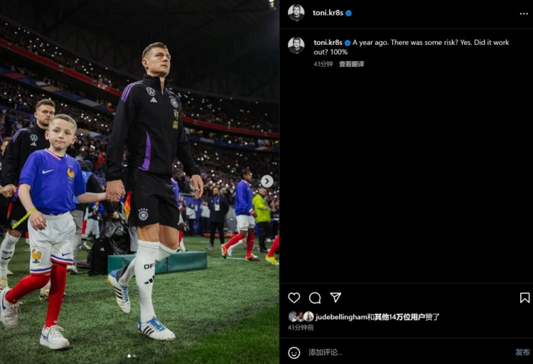 克羅斯紀(jì)念回歸德國隊首秀一周年:雖然有風(fēng)險,但100%成功了