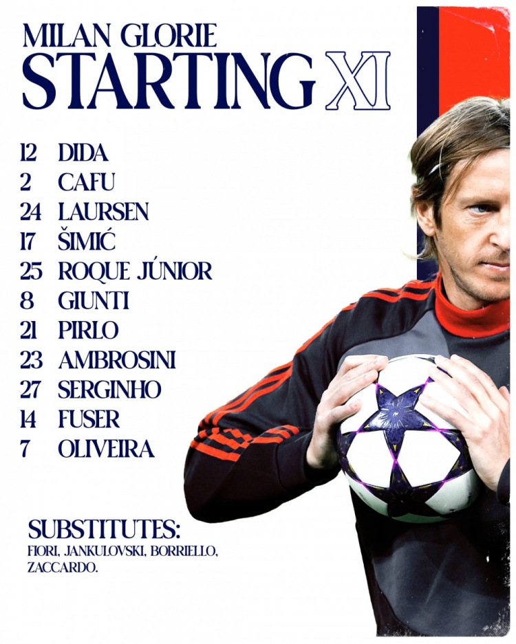 AC米蘭首發(fā):迪達、卡福、勞爾森、西米奇、羅克-儒尼奧爾、吉恩蒂、皮爾洛、安布羅西尼、塞爾吉尼奧、福塞爾、奧利維拉