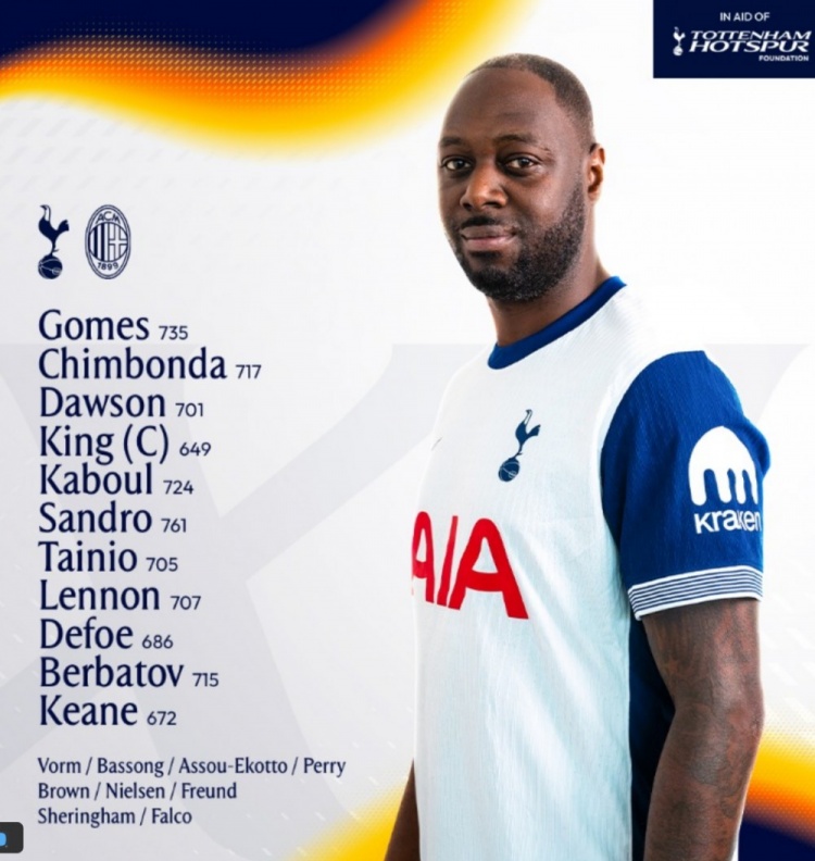 熱刺vs米蘭傳奇賽首發(fā):皮爾洛領銜,貝巴、卡福、安布羅西尼先發(fā)