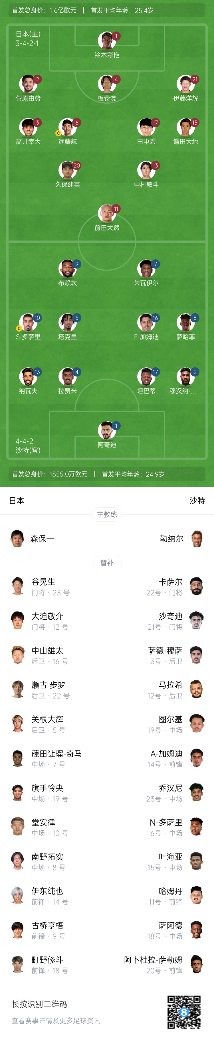 03月25日訊 北京時(shí)間18點(diǎn)35分,世預(yù)賽亞洲區(qū)第三階段C組第8輪,日本vs沙特,賽前雙方首發(fā)公布!日本已經(jīng)提前鎖定2025年世界杯席位,本場(chǎng)比賽他們對(duì)首發(fā)進(jìn)行了輪換。