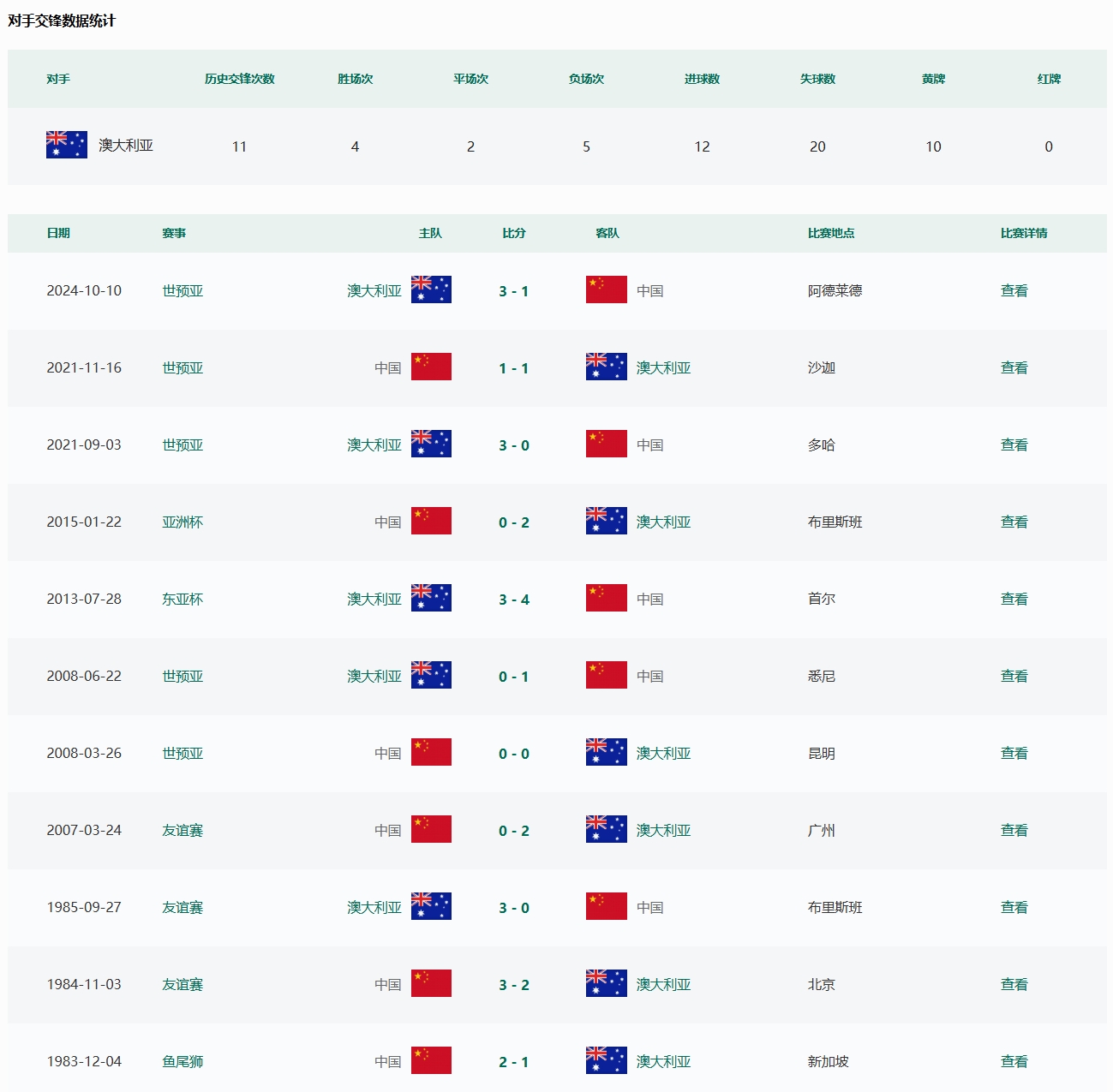 3月25日訊 今晚19:00,國足將在18強賽倒數(shù)第三輪迎戰(zhàn)強敵澳大利亞。此前兩隊共交手11次,國足取得4勝2平5負的戰(zhàn)績。