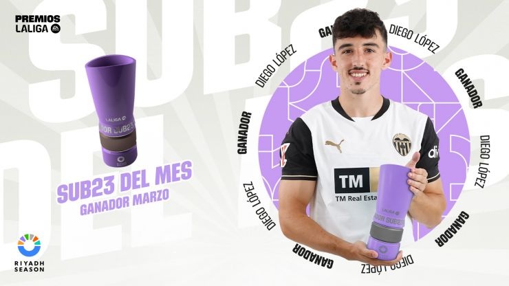 3場3球,官方:瓦倫西亞邊鋒迭戈-洛佩茲當(dāng)選西甲3月最佳U23球員