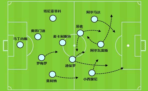 通過他的大范圍跑動(dòng),不只是回撤還要拉邊,帶來頻繁的換位。恩佐在前腰位置同樣有著大量的跑動(dòng),給阿爾馬達(dá)內(nèi)切或者是小西蒙尼前插帶來機(jī)會(huì)。