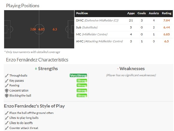 恩佐的特點(diǎn)是處理球聰明,也能成為后腰麥卡利斯特和前場(chǎng)組織者阿爾瓦雷斯之間的最佳銜接。