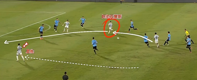 從上一場(chǎng)客場(chǎng)與烏拉圭的世預(yù)賽可以看到,阿爾瓦雷斯被當(dāng)做一個(gè)老年版、不過人的梅西來使用。