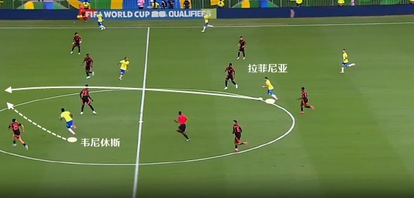 不過上一場(chǎng)面對(duì)哥倫比亞,韋尼休斯在一開場(chǎng)就利用速度前插后制造點(diǎn)球,送出直塞球的,恰恰是回撤的拉菲尼亞。