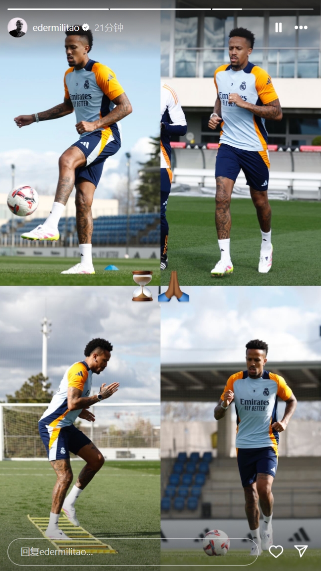 3月26日訊 今日米利唐更新個人社媒,曬出了自己恢復場地訓練的照片,并配上了沙漏和祈禱的表情。