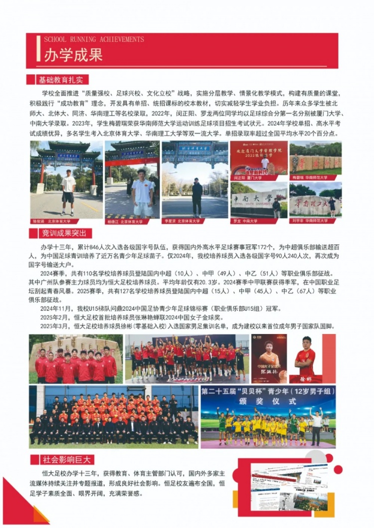 恒大足球?qū)W校發(fā)布2025招生簡章,學費16500元-23500元/學期