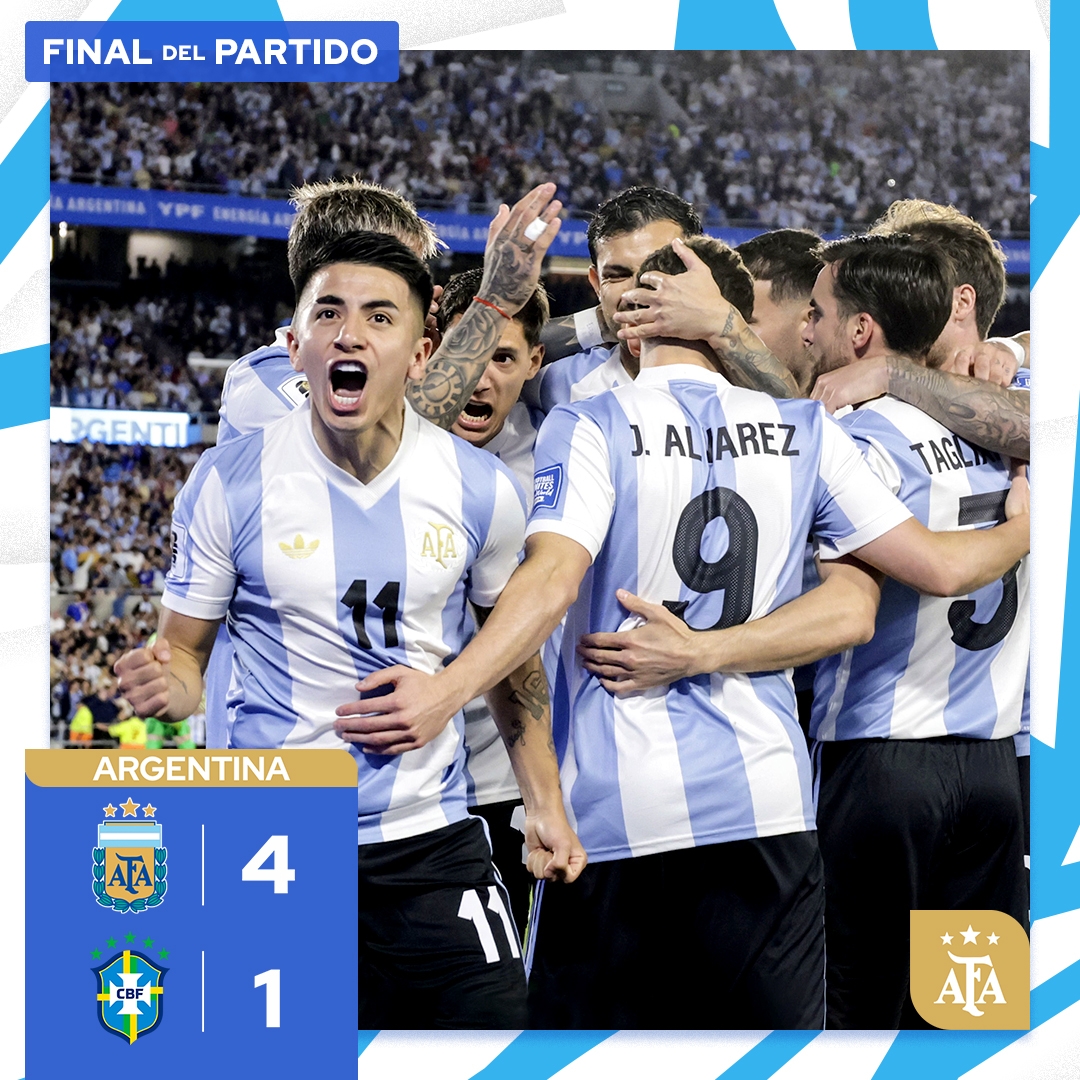 03月26日訊 世預(yù)賽南美區(qū)第14輪,阿根廷4-1巴西,巴西首次在世預(yù)賽被進(jìn)四球,客場16年難勝阿根廷。