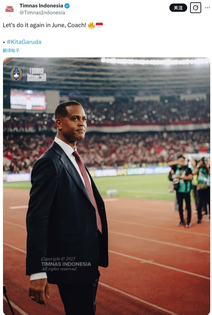 印尼國(guó)家隊(duì)官推今日更新社媒,曬出克魯伊維特在場(chǎng)邊執(zhí)教的照片,并配文寫(xiě)道:“讓我們6月份再來(lái)一次,教練!”