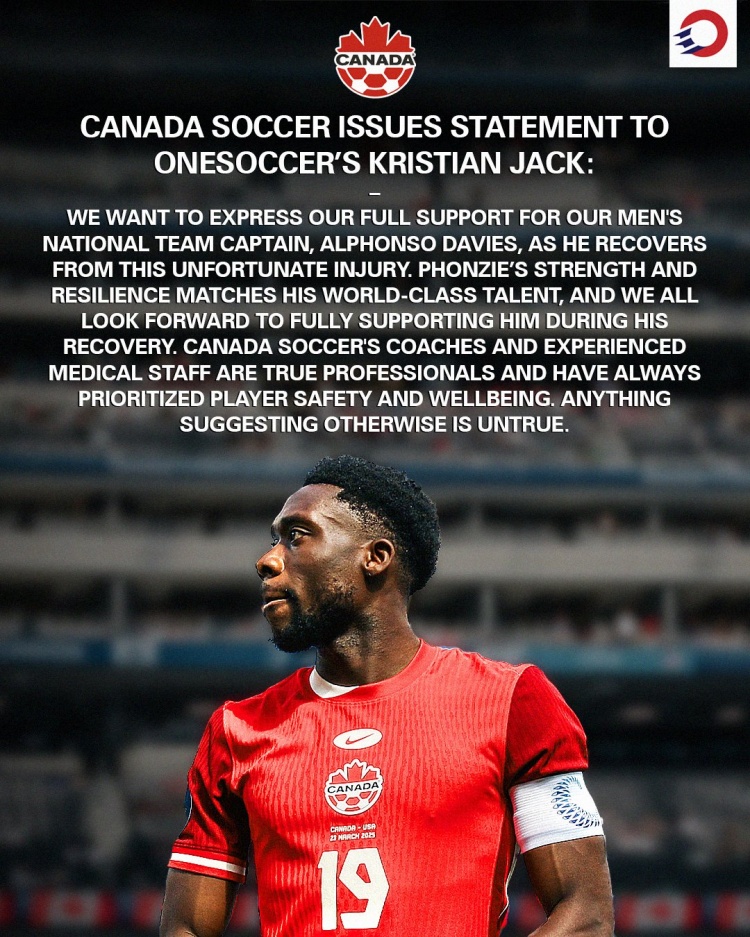 強(qiáng)行讓阿方索出戰(zhàn)?加拿大足協(xié):沒(méi)有不顧球員健康,將全力支持他