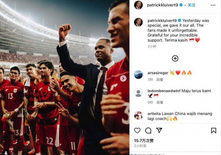 今日克魯伊維特更新社媒,曬出了全隊(duì)圍在一起慶祝勝利的照片,并配文寫道:“昨天是特別的一天,我們?cè)趫錾蟽A盡所有,球迷們的加油助威讓這晚更加難忘。謝謝你們令人振奮的支持,感謝(印尼語)。”