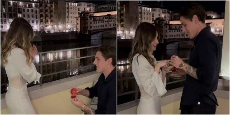 扎尼奧洛在社媒發(fā)布了自己向薩拉求婚的照片,求婚地點(diǎn)是佛羅倫薩著名景點(diǎn)老橋。當(dāng)時(shí)扎尼奧洛單膝下跪,并把戒指戴在薩拉的手指上。扎尼奧洛還配文稱:“現(xiàn)在和永遠(yuǎn)?!?/p>