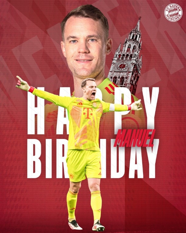 3月27日訊 德國隊(duì)和拜仁官方社媒更新動態(tài),為諾伊爾送上生日祝福。