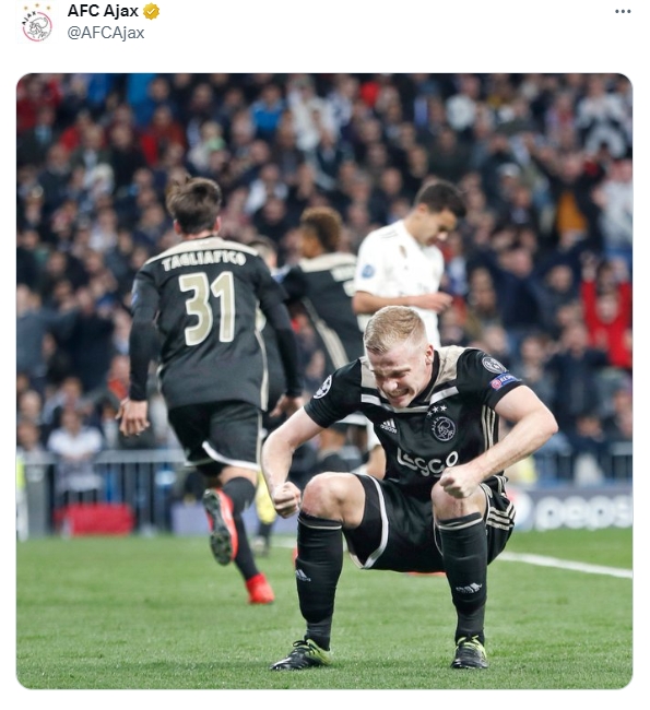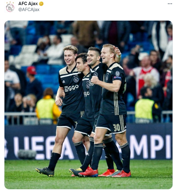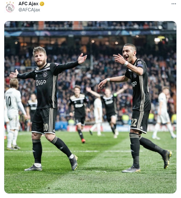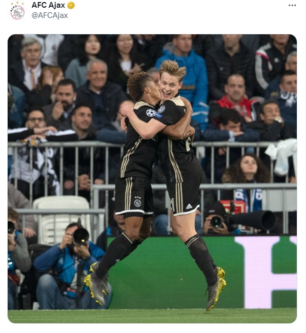 6年前的今天,歐冠1/8決賽次回合,皇馬主場(chǎng)1-4慘敗阿賈克斯,阿賈克斯青年軍淘汰皇馬殺入八強(qiáng)。阿賈克斯官推曬出多圖,重溫這場(chǎng)經(jīng)典戰(zhàn)役。