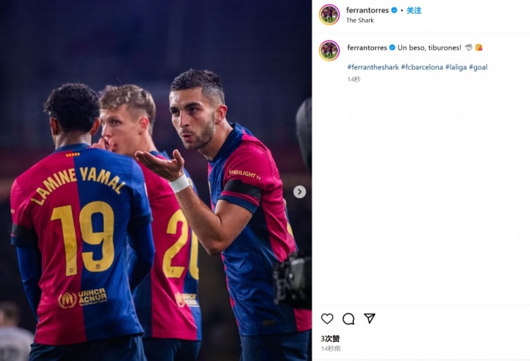 費蘭-托雷斯在此前多次表示自己很崇尚自信而貪婪的“鯊魚精神”,他本賽季各項賽事為巴薩33場貢獻14球3助攻。
