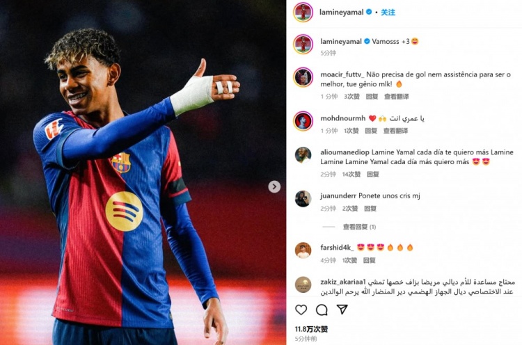 亞馬爾社媒曬照慶祝勝利:讓我們繼續(xù)前進(jìn)!再添三分!