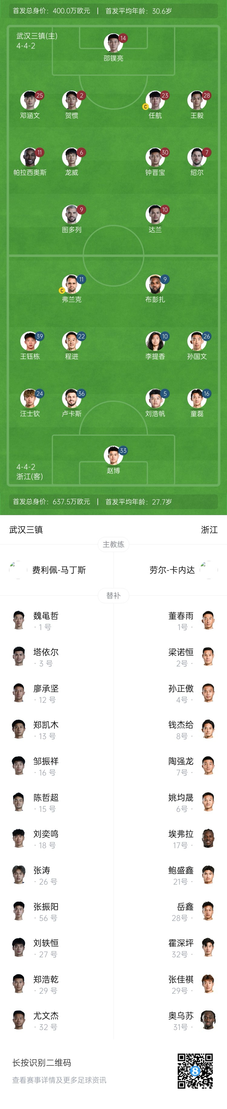 三鎮(zhèn)vs浙江首發(fā):4外援PK3外援!王鈺棟、汪士欽先發(fā),鄧涵文出戰(zhàn)