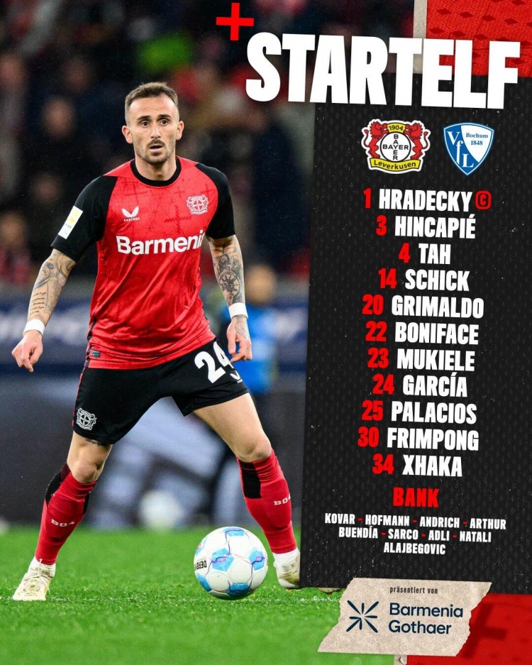 3月29日訊 北京時間3:30,德甲第27輪勒沃庫森vs波鴻。賽前,雙方公布雙方陣容。