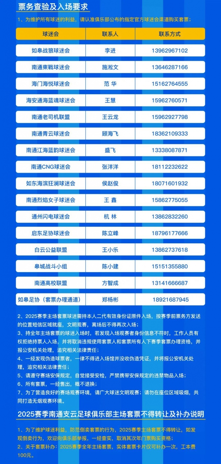 ?(1)2025賽季南通支云足球俱樂部主場套票先購先得,售罄為止;