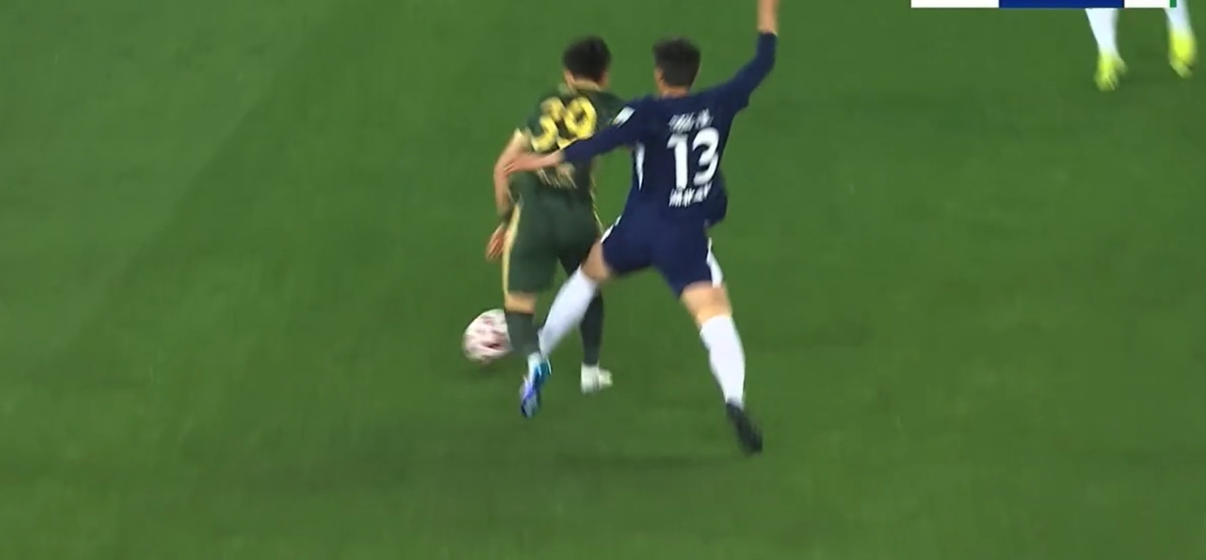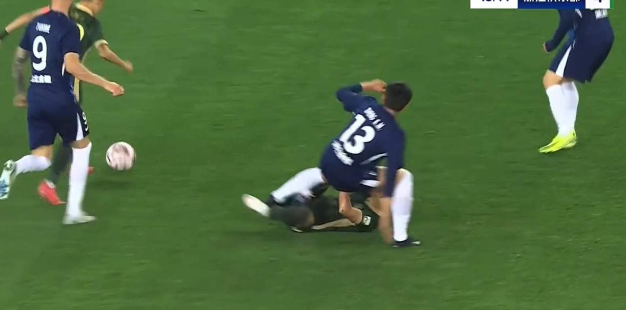 在比賽第47分鐘,鄭凱木從身后別倒王鈺棟,同時(shí)在王鈺棟倒地后,鄭凱木落地正好踩中王鈺棟腳踝,王鈺棟痛苦倒地,隨后受傷下場(chǎng)。