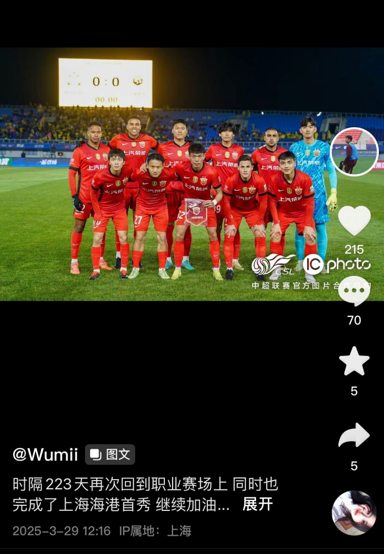 海港首秀!吾米提江更新社媒,紀(jì)念時(shí)隔223天后重返賽場(chǎng)