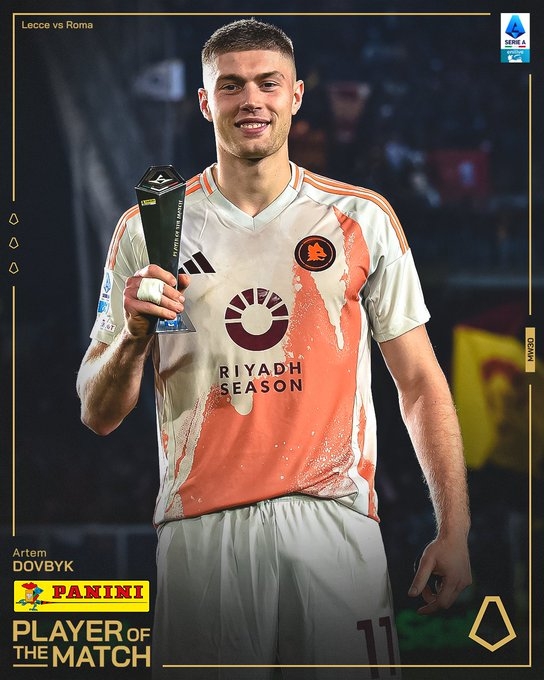 打入制勝進(jìn)球!多夫比克當(dāng)選羅馬1-0萊切一役全場(chǎng)最佳