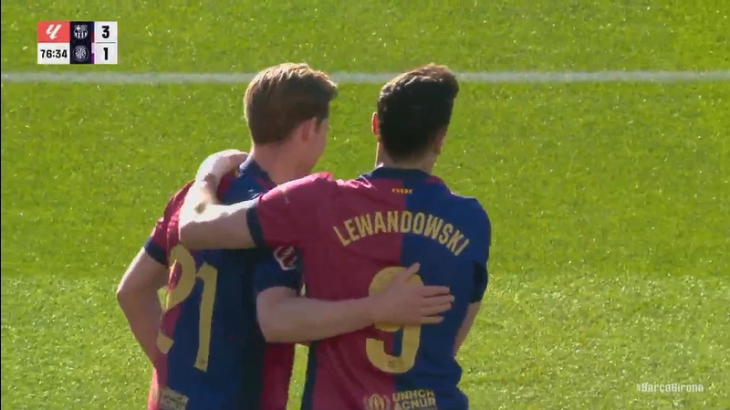 25球領跑射手榜!萊萬16分鐘內(nèi)雙響,巴薩主場3-1領先赫羅納
