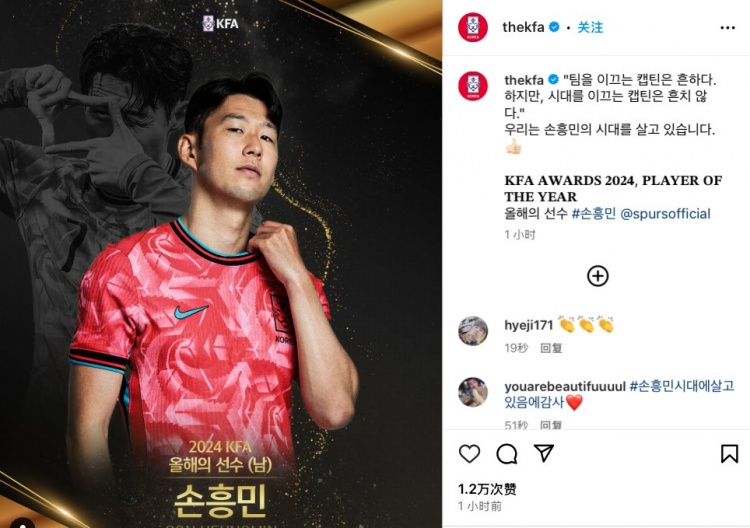 官方:孫興慜當(dāng)選韓足協(xié)2024年度最佳球員,第8次獲得該獎(jiǎng)項(xiàng)