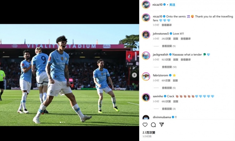 奧賴利也在賽后通過社媒曬出自己的慶祝照并配文:“晉級半決賽????????感謝所有的遠征球迷????????????”。包括斯通斯和格拉利什在內的多位隊友也現(xiàn)身評論區(qū)鼓勵:“愛了愛了”、“多棒的自我展示!”…