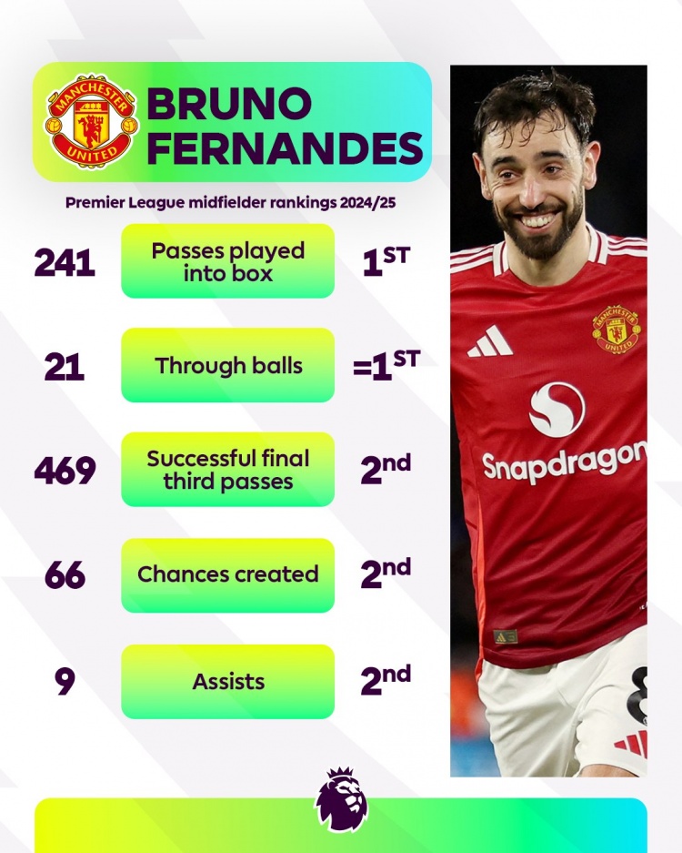 曼聯(lián)大腿!B費(fèi)本賽季傳入禁區(qū)、直塞英超中場最多,助攻第二多