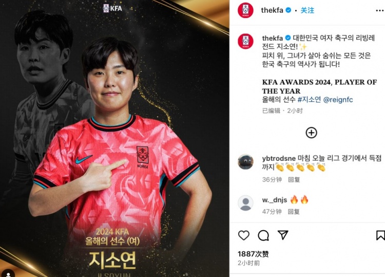 官方:34歲韓國女足名將池笑然當(dāng)選韓足協(xié)2024年度最佳女足球員