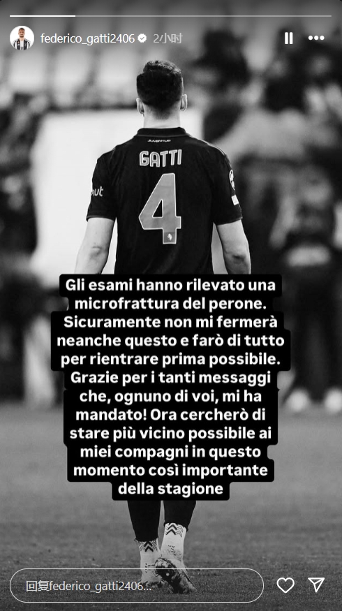 加蒂社媒:經檢查腓骨出現輕微骨折 這不會阻擋我&會盡快回歸